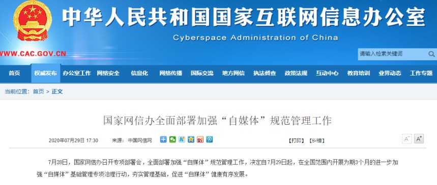 國家網(wǎng)信辦全面部署加強(qiáng)“自媒體”規(guī)范管理工作