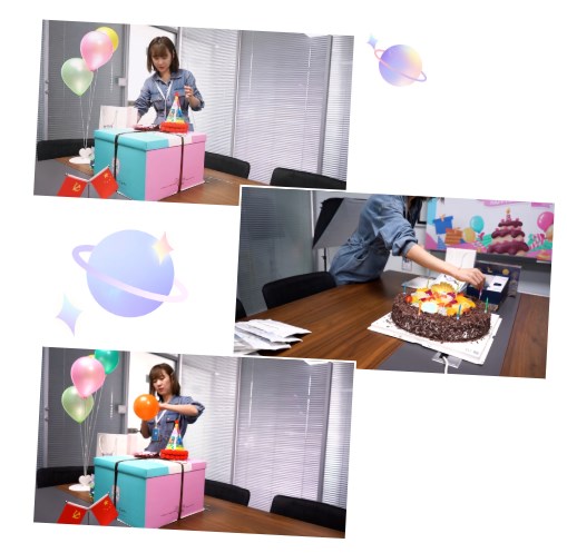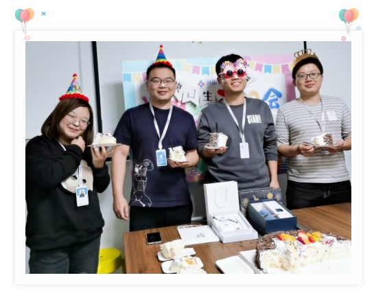 每次生日會(huì),平日里整潔嚴(yán)肅的會(huì)議室總是被氣球、彩旗裝扮的可愛又溫暖,這背后功不可沒的當(dāng)屬后勤部門的小伙伴。為了給壽星們一個(gè)驚喜,她們緊鑼密鼓地開始現(xiàn)場(chǎng)布置。